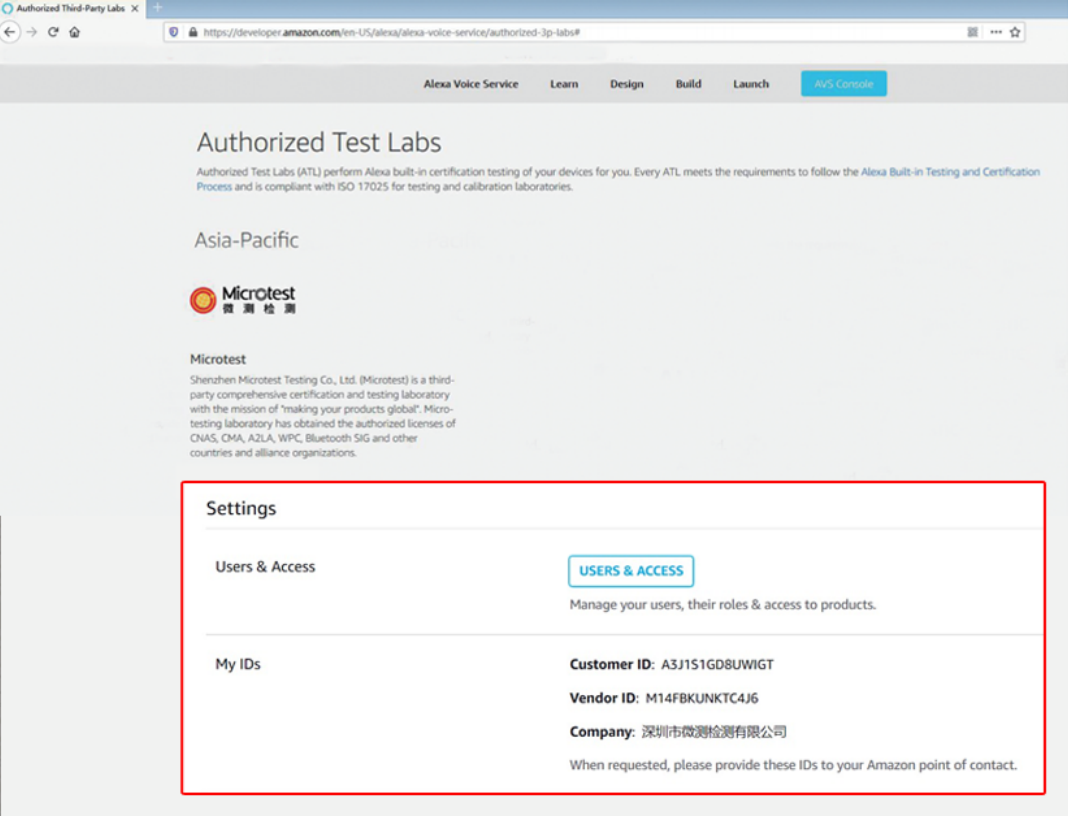 微測(cè)檢測(cè)于2020年5月9號(hào)正式成為亞馬遜Alexa Built-in授權(quán)的第三方測(cè)試實(shí)驗(yàn)室(ATL),授權(quán)編號(hào):M14FBKUNKTC4J6。